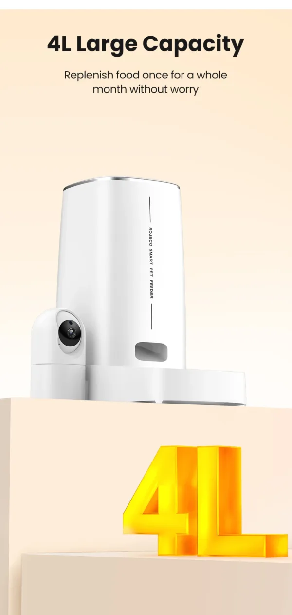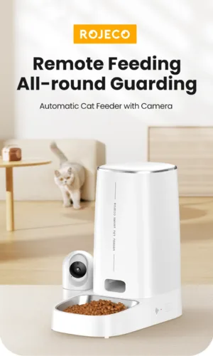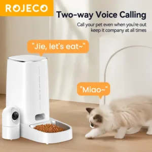 ROJECO 4L Automatic Cat Feeder With Camera Video Cat Food Dispenser WIFI Pet Smart Voice Calling Auto Feeder For Cats Dogs Pet