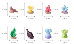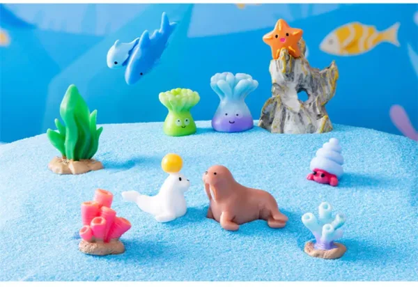 Color | 1 octopus, 1 Sea Hare, 1 boat, 1 green coral, 1 Hermit crab, 1 dolphin, 1 yellow sea anemone, 1 pink coral, 1 Blue sea anemone, 1 starfish, 1 turtle, 1 Sea Lion, 1 seal, 1 green sea anemone, 1 pink dolphin, 1 blue shark, 1 pink shark, 1set 20pcs, 1 fish, 1 purple fish, 1 blue coral |