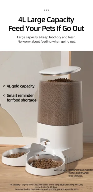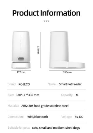 ROJECO Automatic Dog Feeder Smart Dog Food Kibble Dispenser Remote Control Wi-Fi Button Auto Feeder for Pet Cats Feeding Supplies